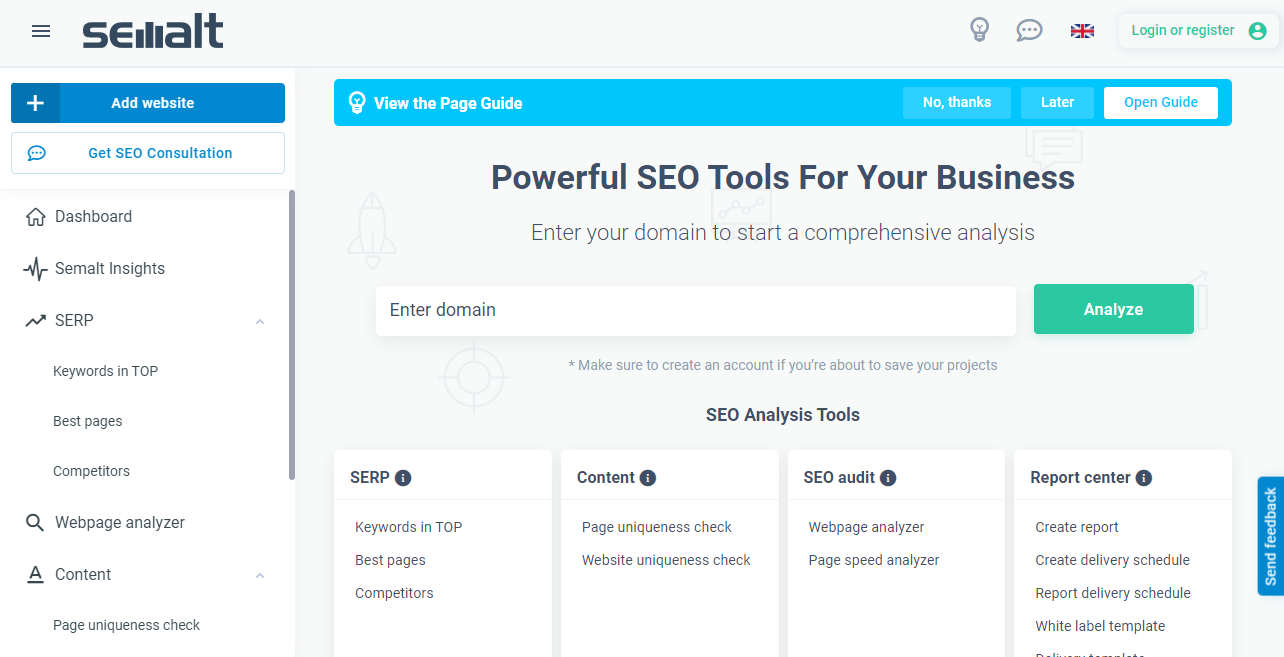 Another tool that I recommend using is Semalt's Dedicated SEO Dashboard. Remember that the tool is available in both free and paid versions. It allows for a thorough analysis of the factors affecting the speed of loading the website.
